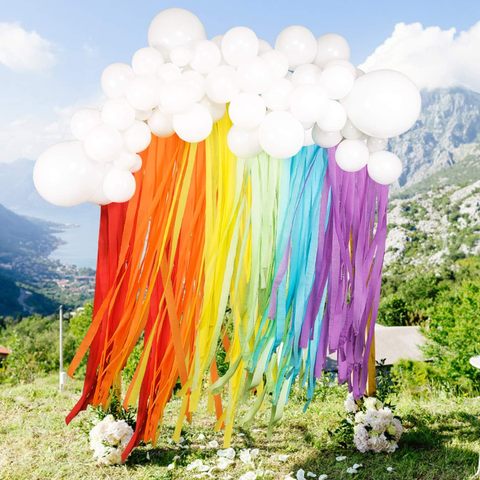Cầu Vồng Đảng Trang Trí Với Bóng Trắng Vòng Hoa Và Cầu Vồng Giấy Crepe Streamers Cho Bé Tắm Cầu Vồng Sinh Nhật Đảng